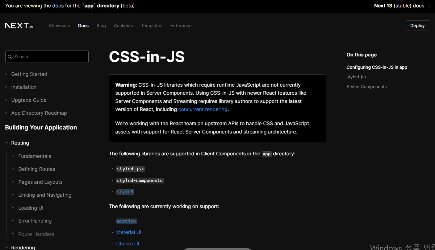 css-in-js 는 next js 와 궁합이 좋지 않다고 들은적이 있는데, 그래서인지 호환이 늦는것 같다